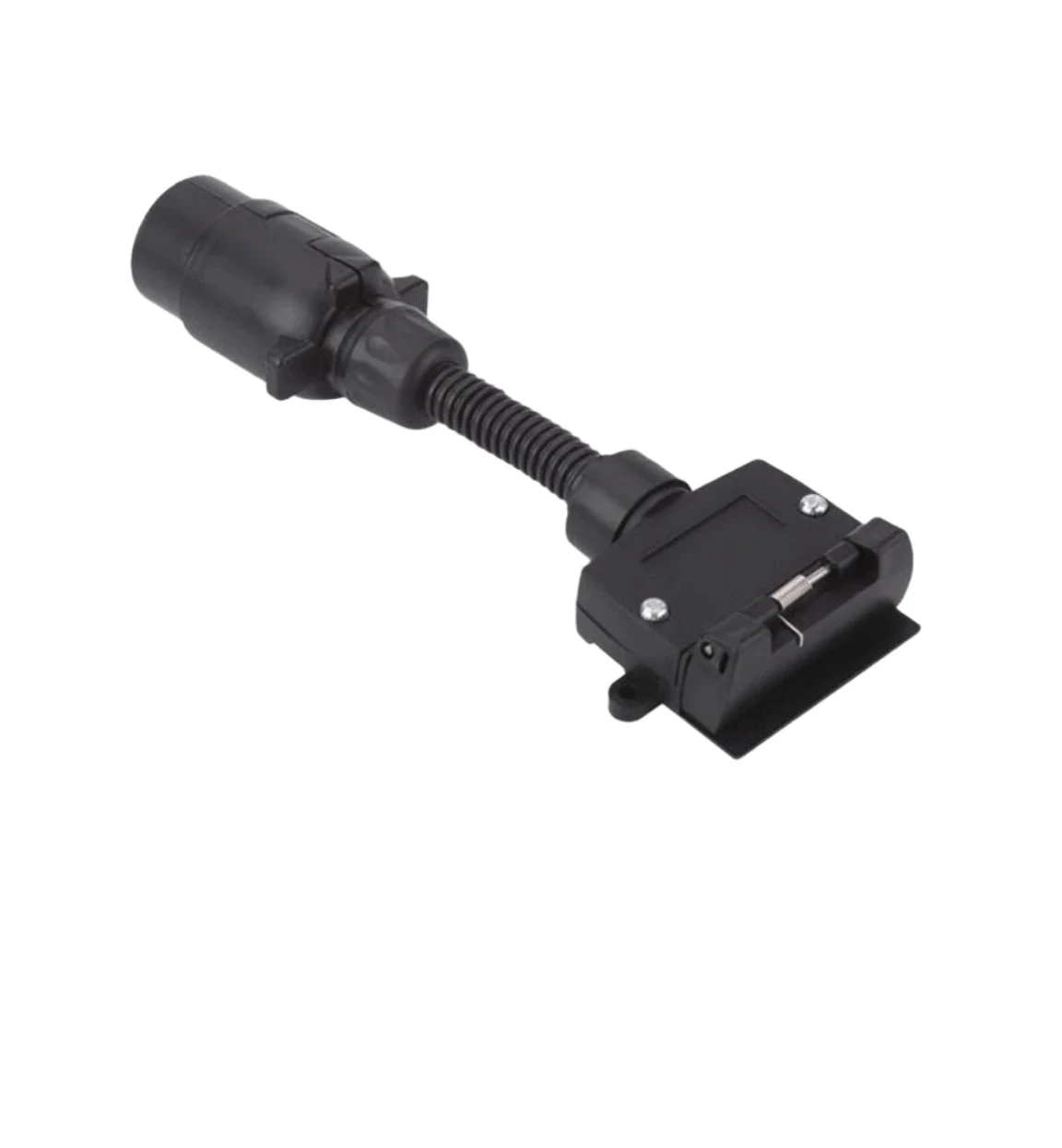 Adapts 12 pin on the trailer to connect to 7 round on the car.