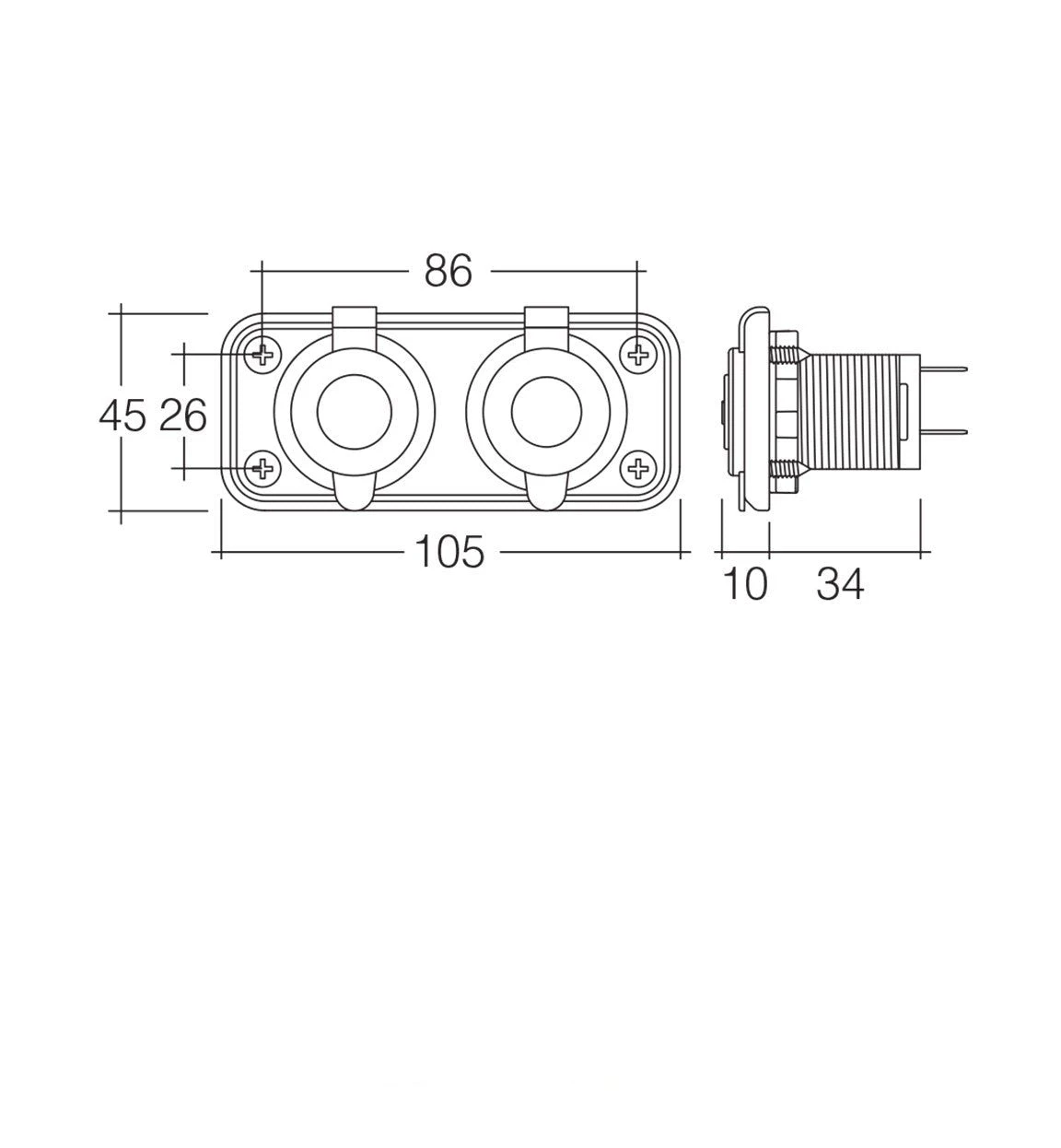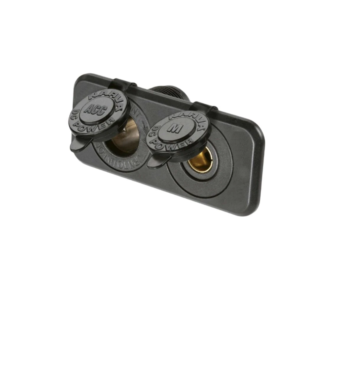 Features dustproof covers and heavy-duty construction. Amp rating: Accessory Socket 20A at 12V, 10A at 24V Merit Socket 16A at 12V, 8A at 24V Mounting opening 29mm dia. per socket