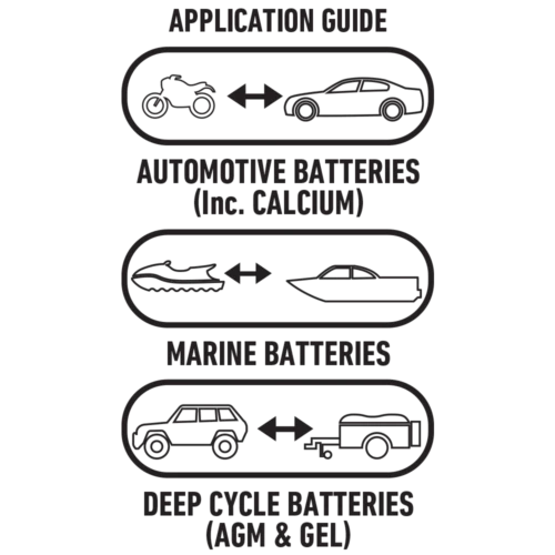 Delivers a high quality charge tailored to suit all battery chemistry types. Ideal for use on smaller passenger vehicles through to 4WDs.