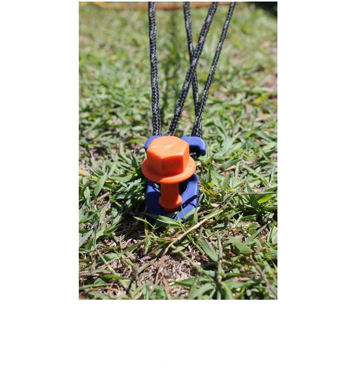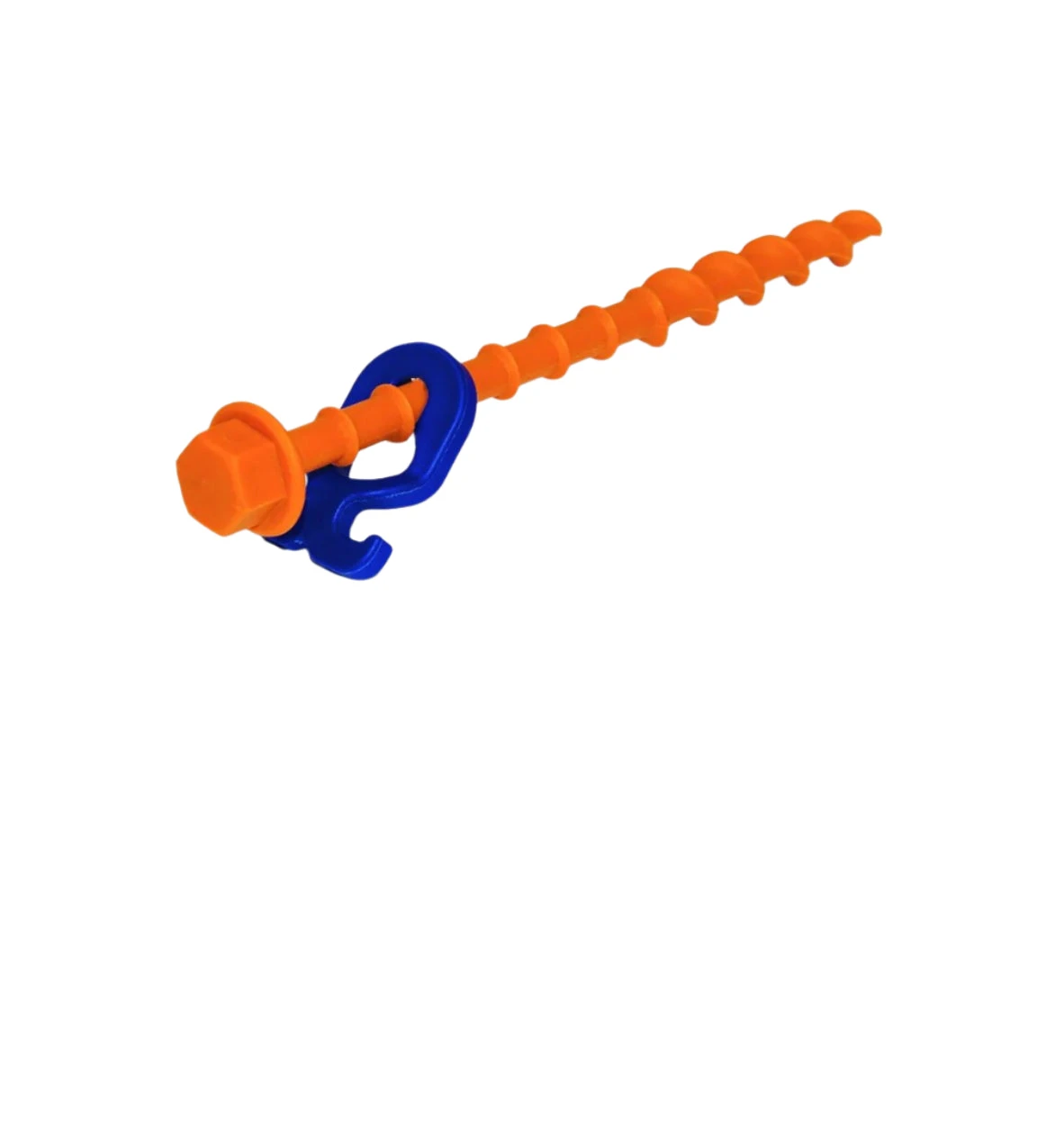 Wider thread down lower half of peg creates a resolute anchor without the entire peg being inserted and allows for blue rope clip to be adjusted.